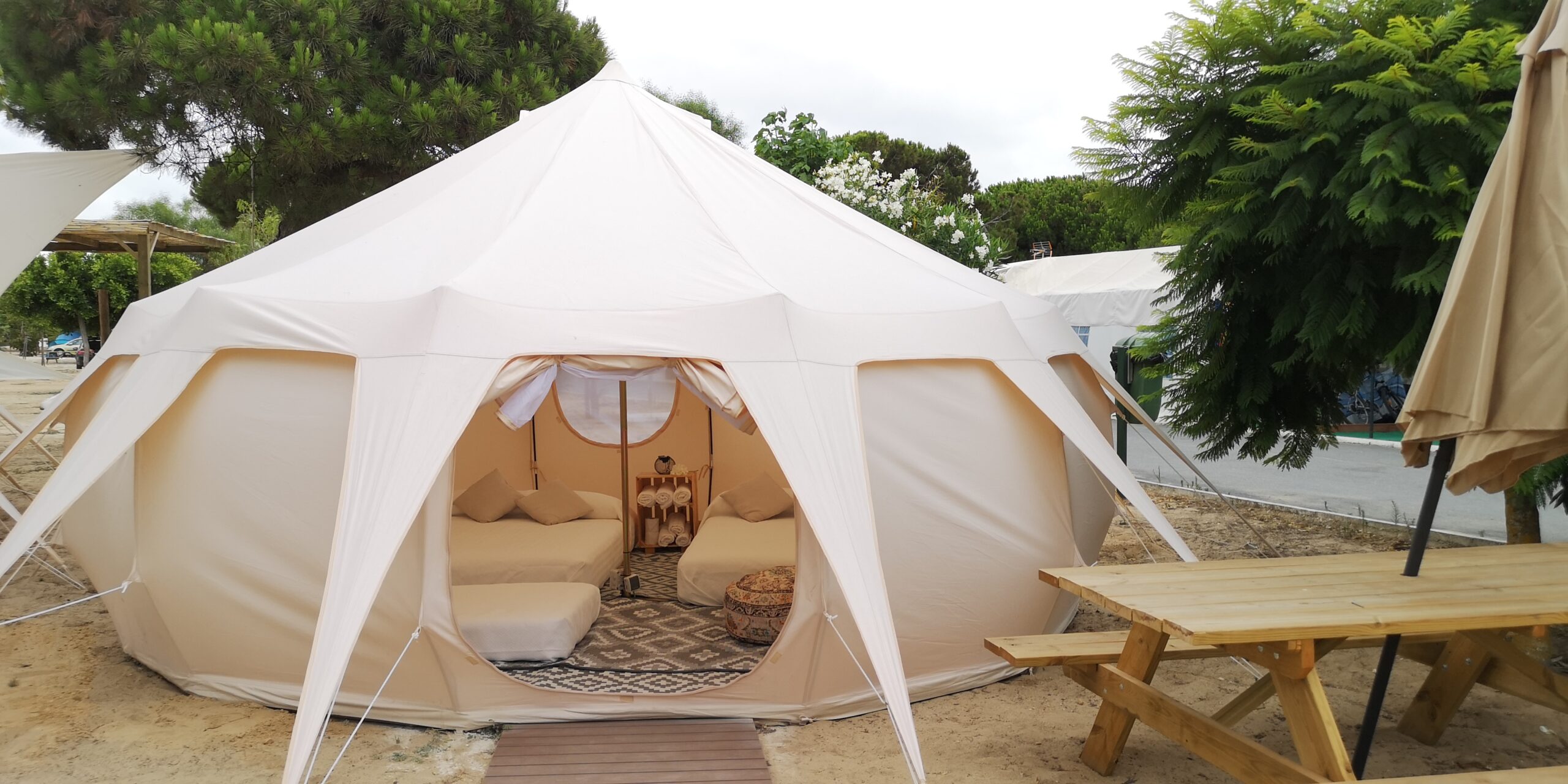 Tiendas tipo Bell equipadas con todo lo necesario para disfrutar del descanso en plena naturaleza. Con capacidad hasta 4 personas